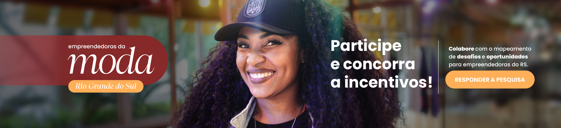 Para isso, precisamos conhecer o seu negócio. Estamos realizando um estudo social com mulheres que empreendem no setor da moda no Rio Grande do Sul, a fim de levantar as principais potencialidades e gargalos desses negócios, bem como os principais impactos e perdas causados pelas últimas enchentes do Rio Grande do Sul para direcionar os investimentos sociais do Instituto Lojas Renner.