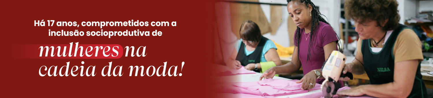 Temos um compromisso com o protagonismo feminino e acreditamos que a moda pode ser uma ferramenta de transformação na vidas de mulheres e suas comunidades.